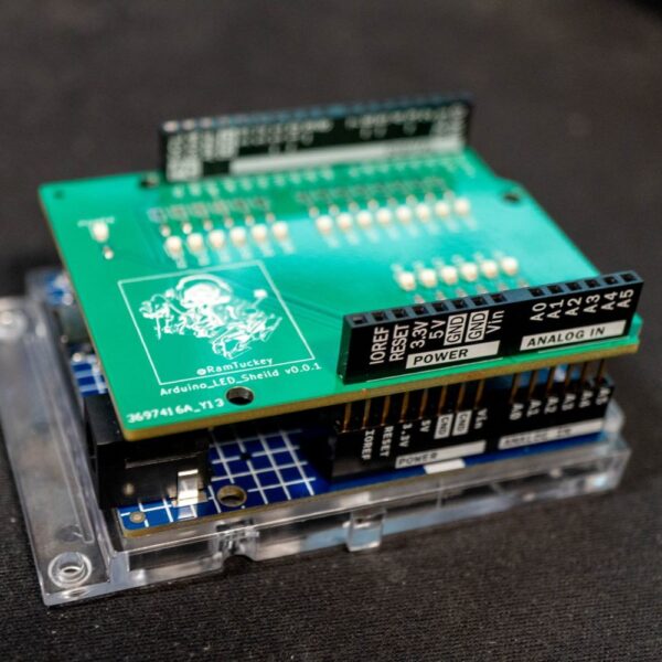Arduino UNOの入出力ピンすべてにLEDを搭載したデバッグ用シールドを自作。開発のきっかけから回路設計、基板発注、動作確認までを解説。